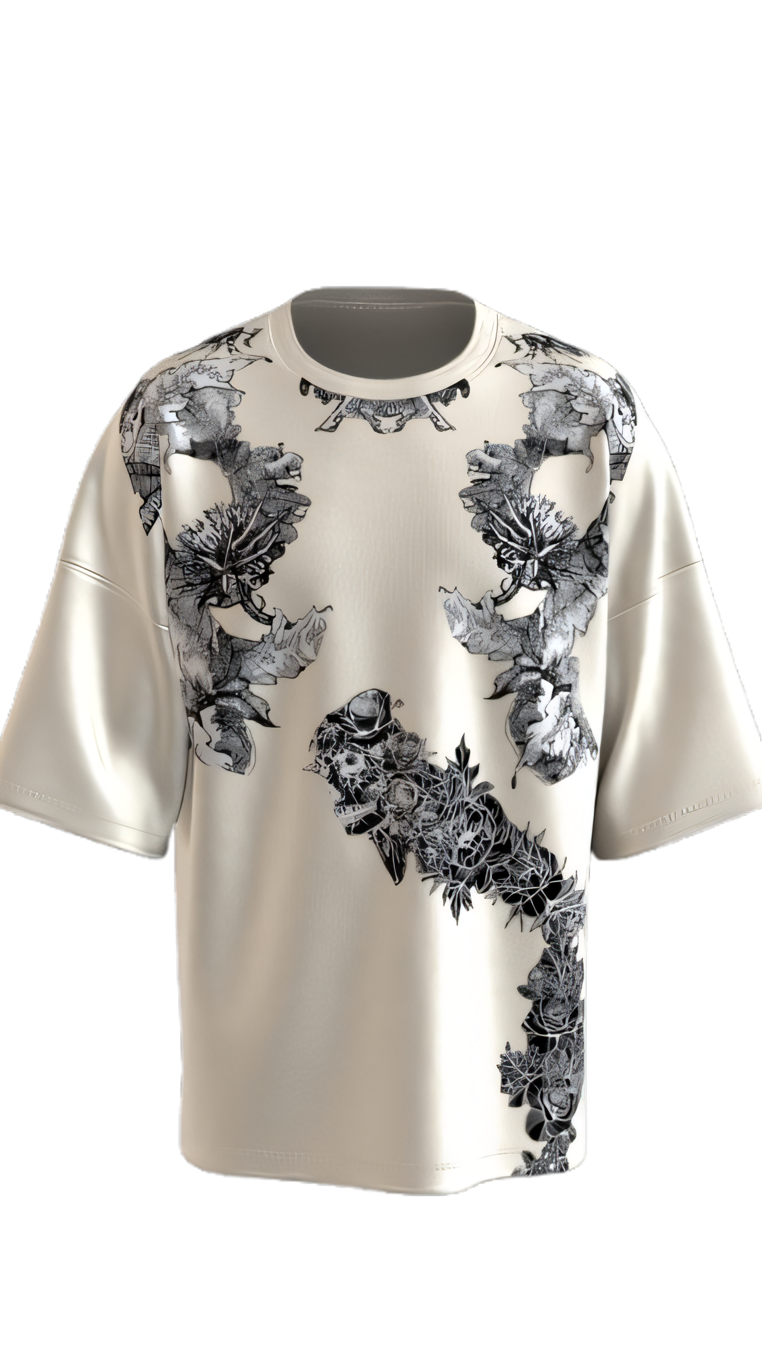 ๐บ Dark Floral Fusion โ Features a striking mix of flowers, skulls, and abstract elements arranged in a stylized, anatomical shape